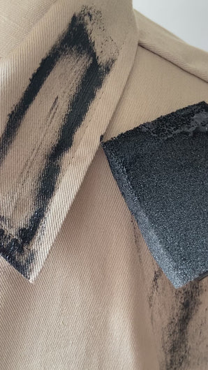 The structured abstract shirt/dress is an oversized fit sized in mens. The style is designed to fit oversize which it gives you full range for versatility. Roll the sleeves up, down, cuffed or let them hang for a dramatic look. Shirt/ dress can be worn opened, buttoned with or without bottoms!